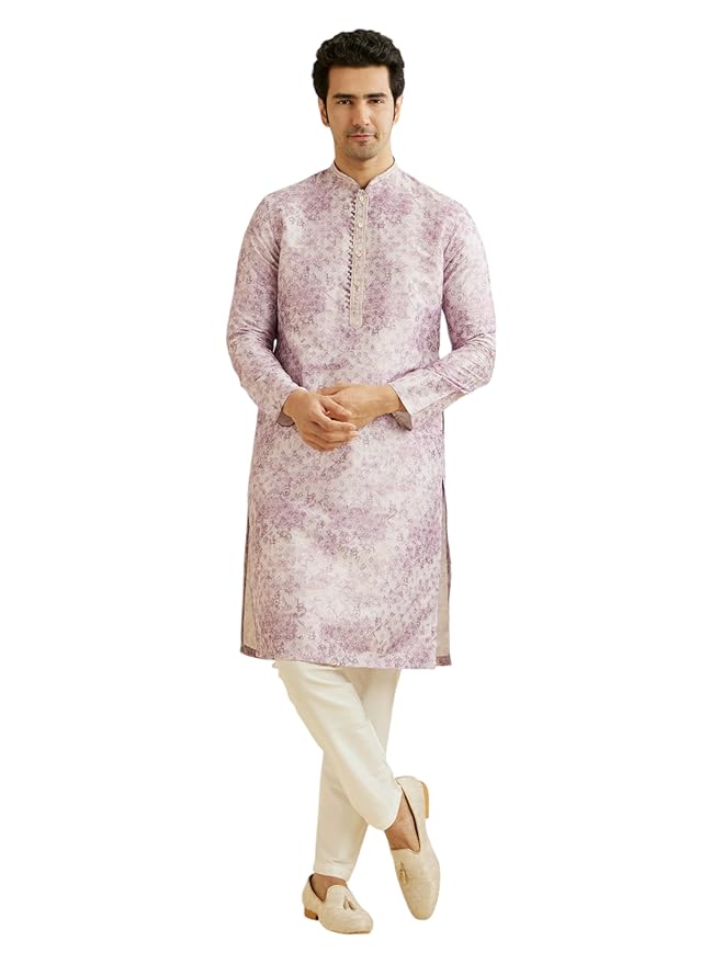 - Design:-Dress to impress with this grand Kurta Pajama in elegant lilac. Crafted from superior silk, the ensemble radiates royal charm and style. Accompanied by a matching pyjama, it’s a classic choice for festivals or celebrations. Star in any gathering with this stunning Ethnic Wear Kurta Pajama.